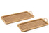 Set van 2 dienbladen rechthoekig rattan/metaal natuurlijk. Breedte: 36 cm, Hoogte: 10 cm, Lengte: 71 cm. Materiaalsamenstelling: Ijzer(20%), rattan(50%), triplex(30%).