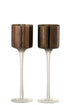 Kaarsenhouder Op Voet Boom Glas Bruin Klein Assortiment Van 2