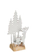 J-Line Theelichthouder Kerst Hout/Metaal Wit/Natuurlijk Klein