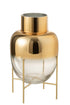 J-Line Vaas Cylinder Op Voet Glas Transparant/Goud Large - 38.00 cm hoog