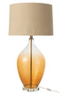 Tafellamp van glas in amberkleur. Breedte: 46 cm, Hoogte: 85 cm, Lengte: 46 cm, Gewicht: 4.5 kg. Collectie: Zomer 2025. Kleur: Bruin. Materiaal: Linnen(18%), kristal(15%), metaal(2%), glas(65%). Lampfitting: E27. Maximaal wattage: 60.0. Kabellengte: 150.0.