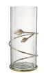 "Stylish Vase Leaf in Wide Glass/Iron with a Transparent/Gold design. Dimensions: 15cm W x 40cm H x 15cm L, weight 2.12 kg. Part of the Winter 2024 collection. Material: Iron(30%), glass(70%). Available in Transparent color."